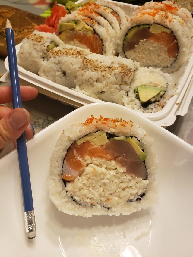 «В нашем местном суши-ресторане продают суши для гигантов. Это их обычный размер (диаметр 9,5 см)»