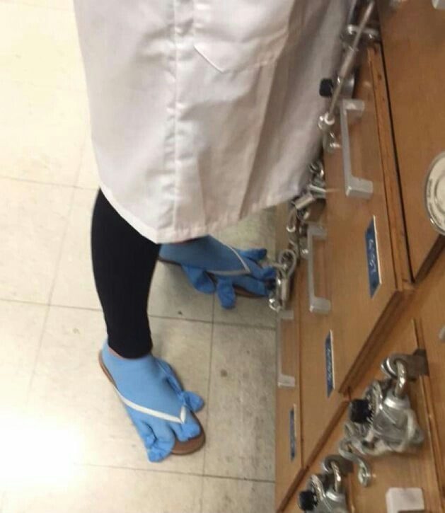 8. Я надел разные ботинки, чтобы узнать мнение жены о них, а потом забыл переобуться и целый день на работе провёл вот так