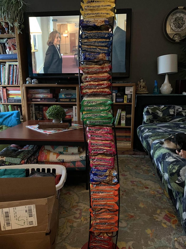 Он переделал старую подставку для дисков на подставку для лапши быстрого приготовления