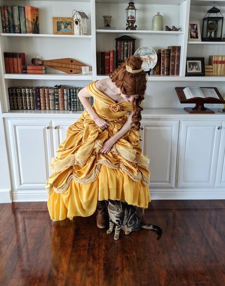 Девушка-аниматор перед работой вытряхивает кошку из своей униформы