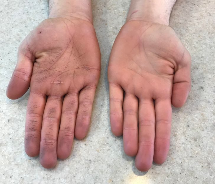 Насколько трудно работать в медицинских перчатках? Вот рука врача после 10-часовой смены.