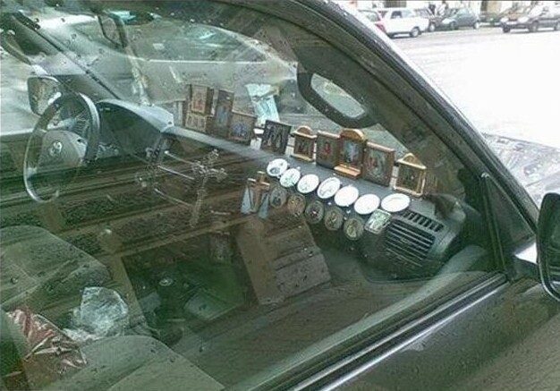 Безопасность прежде всего! Поэтому среди водителей общественного транспорта так много верующих. Атеистов среди них нет. И в доказательство представляю вам целую подборку с автомобильными оберегами. Интересно, от штрафов спасает?