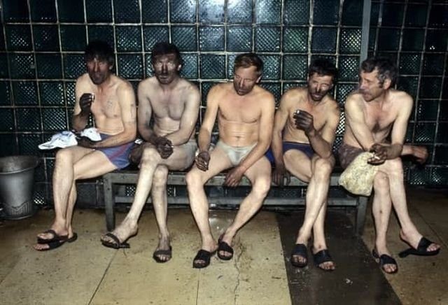 Шахтеры после работы, Кемерово 1996 год.