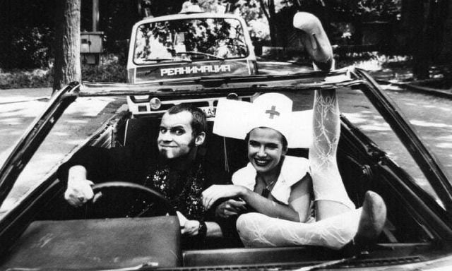 Георгий Делиев и Эвелина Блёданс на съёмках «Маски-шоу», 1995 год.