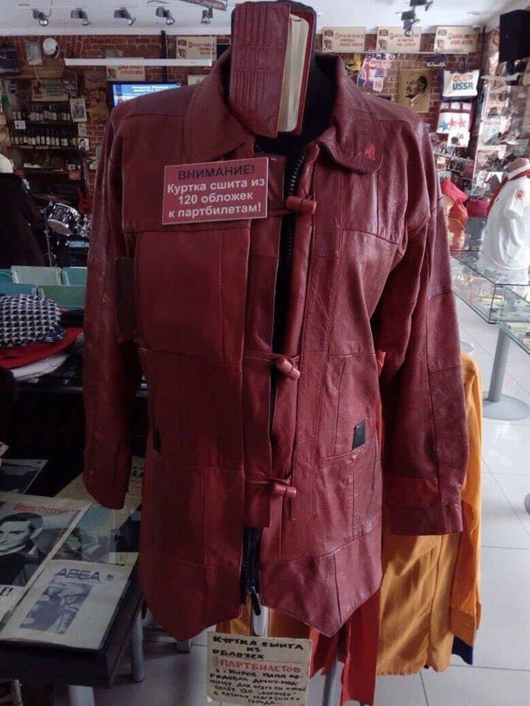 Куртка, сшитая из 120 обложек к партбилетам в начале 90-х