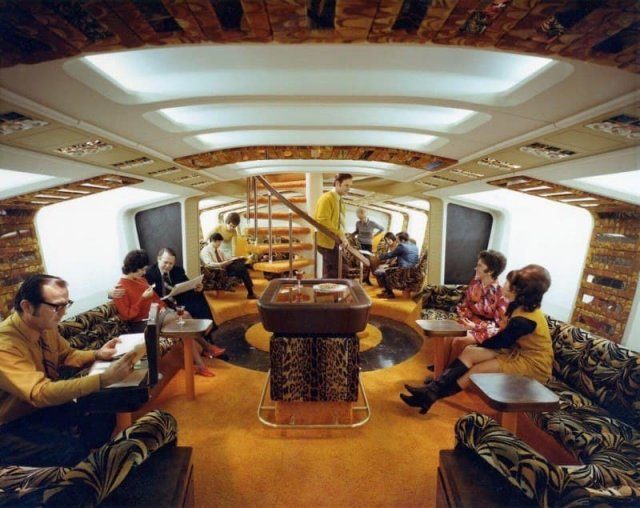 Зал отдыха самолёта Boeing-747, 1970-е.