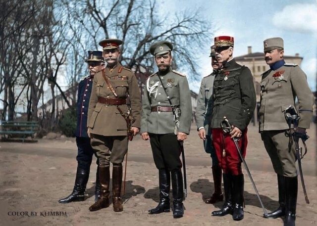 Император Николай II среди военных представителей союзных держав. Могилев. Могилёвская губерния. Российская империя. 8 сентября 1916 года.