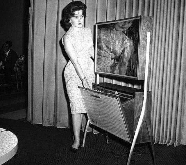 Телевизор с плоским экраном и возможностью записи передач для просмотра в отложенном режиме. США, Чикаго. 1962г.