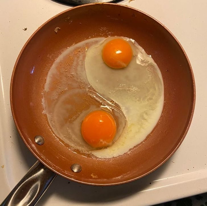Яичница классно получилась! Даже если сильно захотеть, то так не сделаешь!