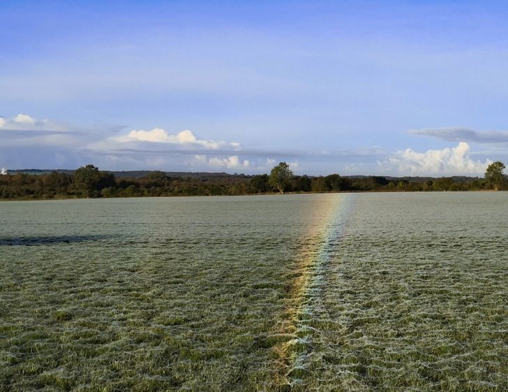 Поле затянуто паутиной, которая и преломляет свет, порождая радугу