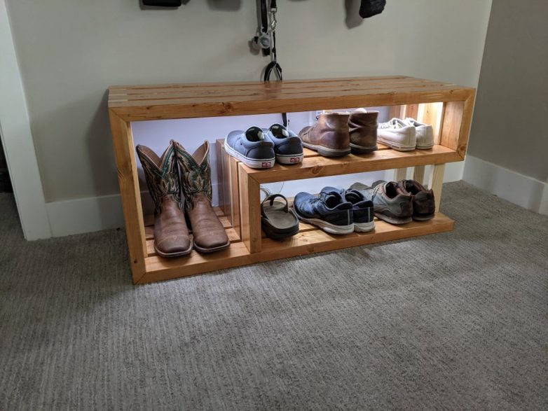 Обувной шкафчик целиком ручной работы, с оригинальным механизмом полок