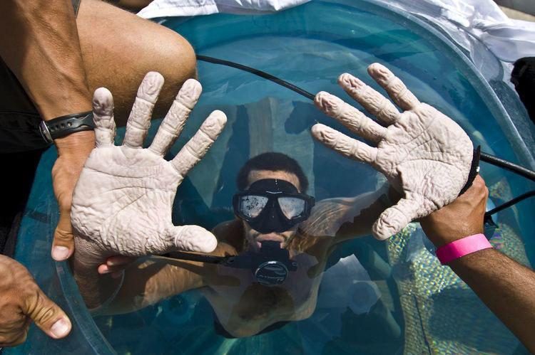 Руки Дэвида Блейна после того, как он провел 7 дней под водой