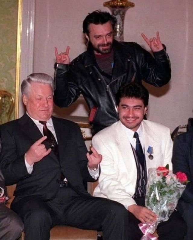 Пpeзидент России Боpис Ельцин встречается с учacтниками группы «АлисА». Москва, 1993 год