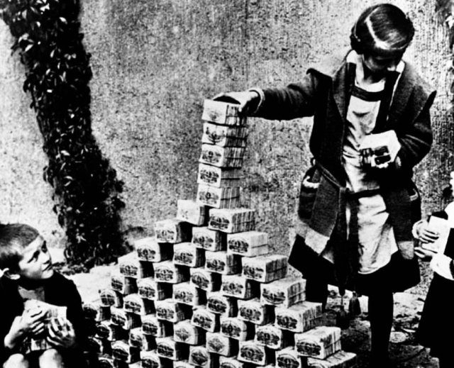 Дети играют пачками денег в период гиперинфляции. Германия, 1922 год.
