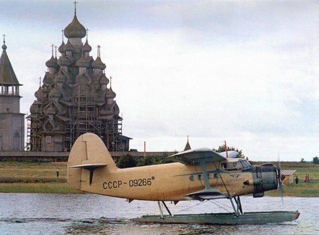 АН-2В на Онежском озере. Карелия, остров Кижи. 1973 год.