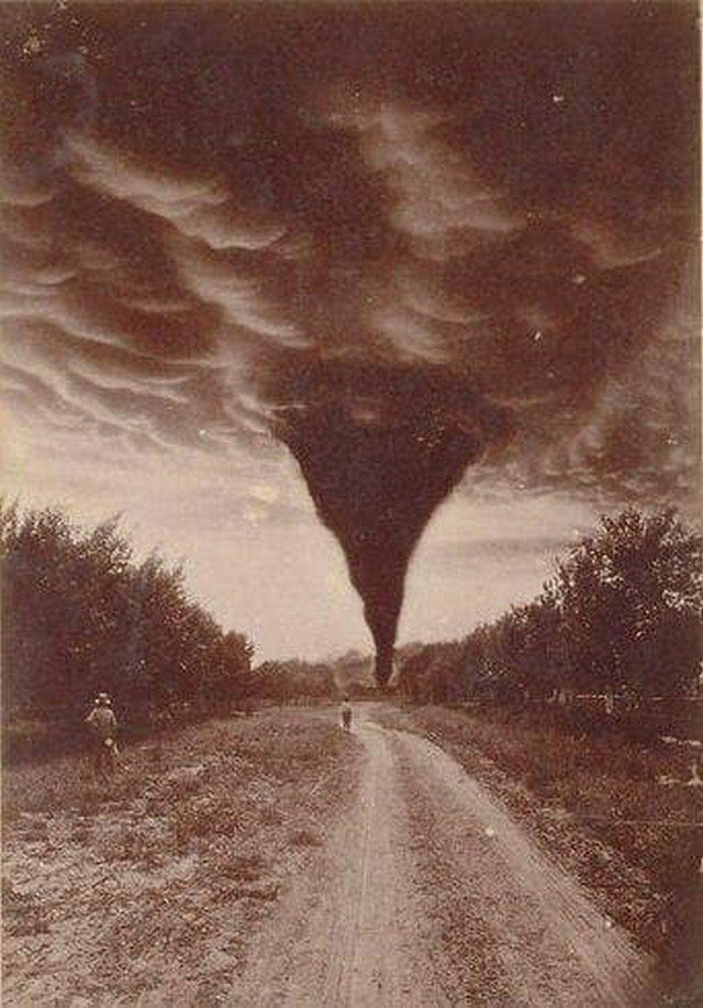На рубеже веков выдержка была уже достаточно короткая. К тому же, хобот торнадо снят без подробностей
