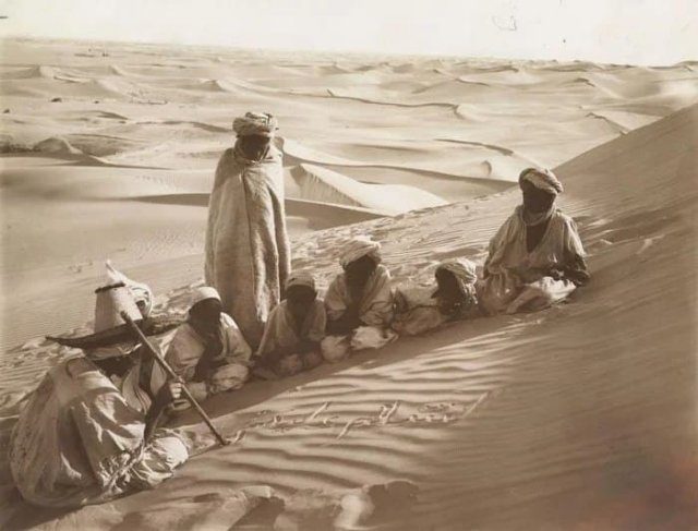 Дети обучаются грамоте, Тунис. Песок Сахары в качестве классной доски, 1914 год