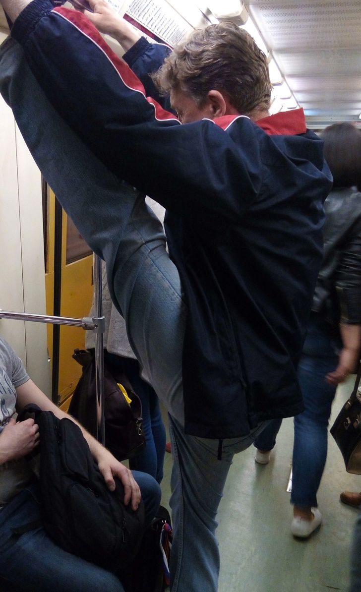 Где еще демонстрировать растяжку, как не в общественном транспорте?