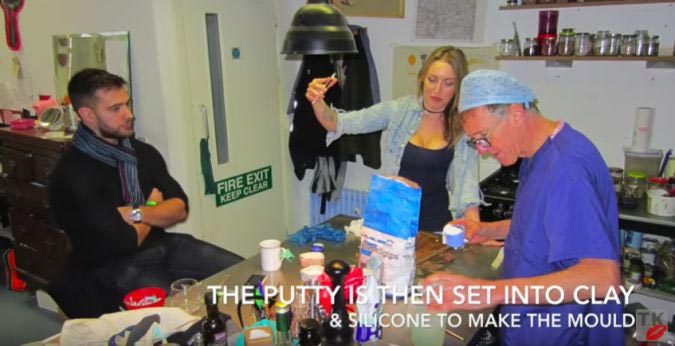 Для этого на ануc наносится масса, из которой делают стоматологические пломбы. Затем засохшая пломба отпечатывается в глине или силиконе, чтобы изготовить форму.