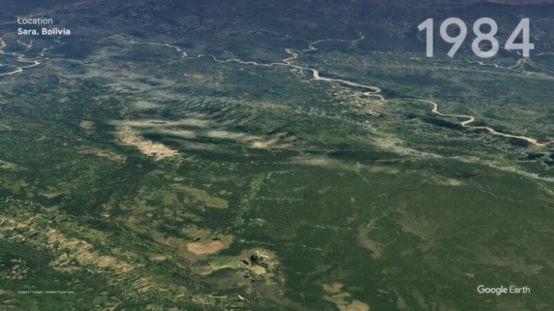 А вот какие изменения произошли с лесами — вот, например, Ньюфло де Чавес, Боливия