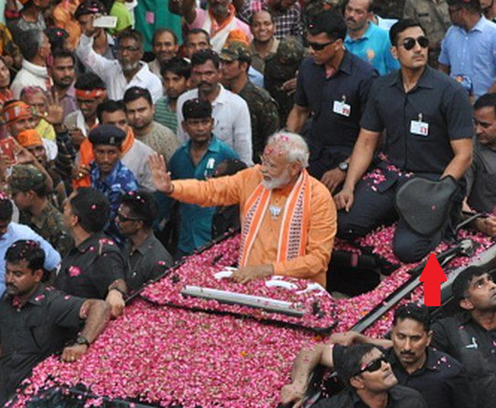 Вопрос: «Что это за большая черная рукавица на руке телохранителя, стоящего за индийским премьер-министром?»
