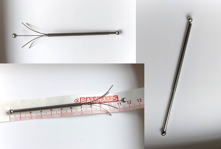 Вопрос: «Что это такое я нашла в сумочке? Сделано из металла, оба шарика приклеены суперклеем. Трубочка двигается. 4 конца не закруглены а просто обрезаны»