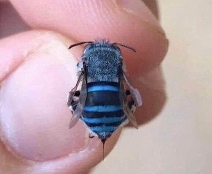 Редчайшая пчела с синими, а не желтыми полосками