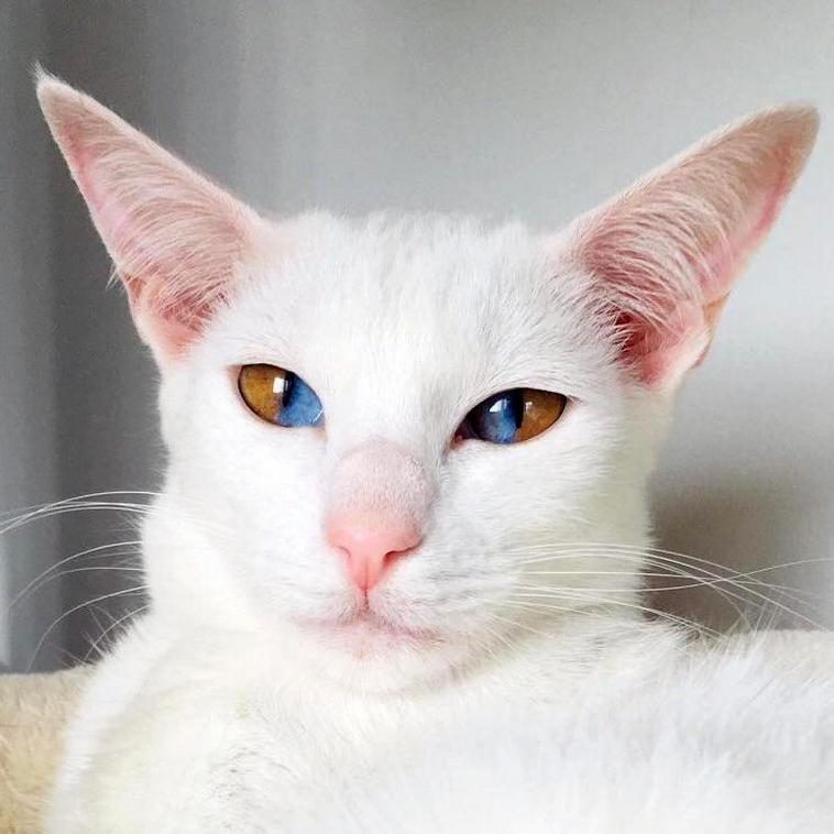 У этой кошки секторальная гетерохромия. Это не опасно и очень красиво.