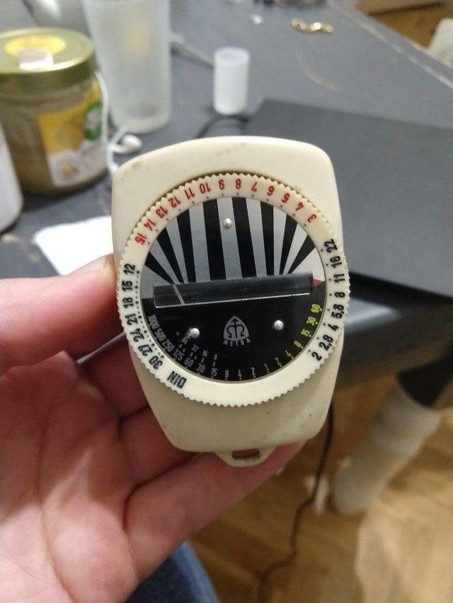 Ответ: «Это — экспонометр, прибор для определения правильной экспозиции, контраста и других параметров, что важны при съемке кино»