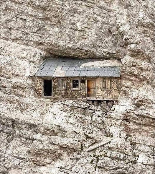 Альпийский приют на горе Монте-Кристалло, Италия, расположенный на высоте 2760 метров.