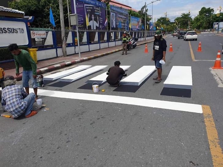 Зебра нарисована в формате 3D, для привлечения внимания водителей