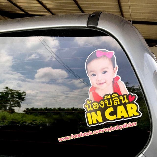 Тайцы, как и мы, клеят наклейки “Ребенок в машине”, вот только наклейки делают на заказ с изображением своего чада