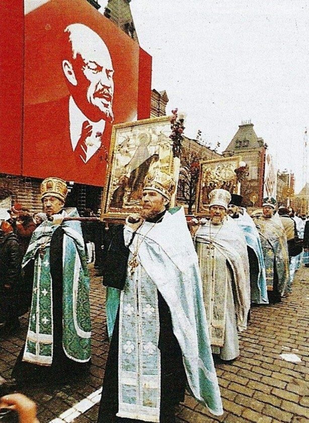 Крестный ход перед церемонией освящения закладного камня Казанского собора. Москва. СССР. 14 ноября 1990 г.