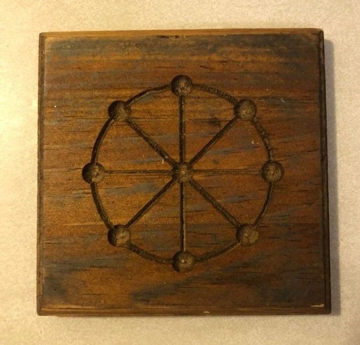 Это игра «Круг», она существовала еще в Древнем Риме, а кое-где популярна и сейчас. Там не хватает фишек, которые для победы надо выстраивать на поле в определенной последовательности".