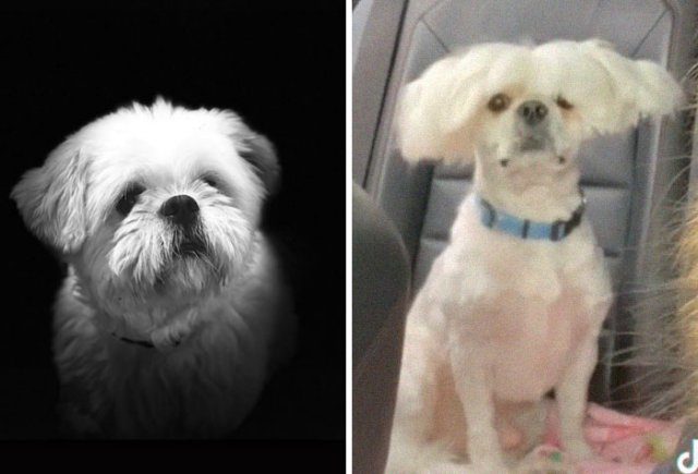 Фотография в объявлении о продаже щенка в Интернете и его фото в реальности
