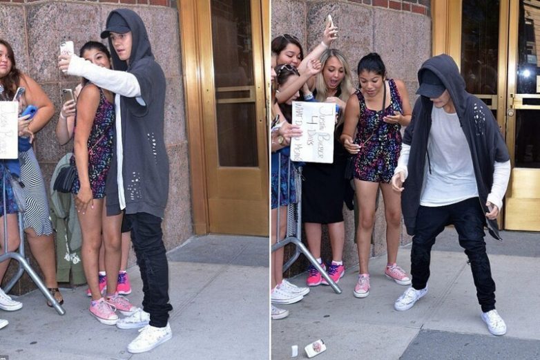 Поклонница попросила Бибера о селфи, тот любезно согласился — но телефон девушки выскользнул из рук звезды. Интересно, возместил ли Бибер своей фанатке разбитый телефон?