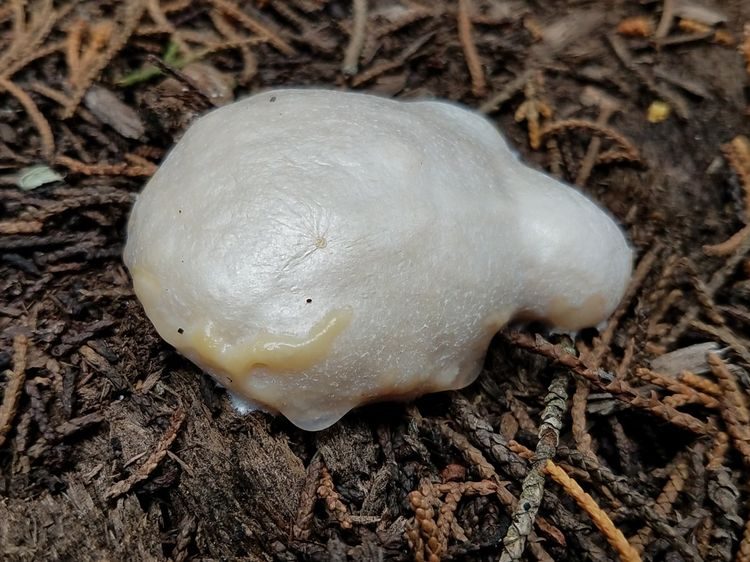 Ответ: «Это слизистая плесень энтеридиум дождевиковый (Enteridium lycoperdon), известная так же как ложный дождевик. На репродуктивной стадии образует слизистую каплю, которая при созревании имеет серебряную кожицу под мягкой массой коричневых спор»