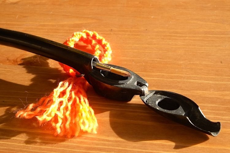 Вопрос: «Что это такое? Небольшой цилиндрический предмет, у которого один закругленный конец ввинчивается в основную часть. Внутри основной части есть пружина, обёрнутая в хлопчатобумажный или тканевый материал. Другая сторона основы более узкая и тоже имеет резьбу, а снаружи есть канавка посередине»