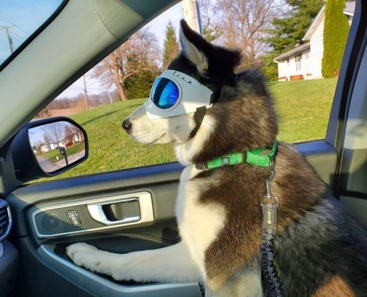 Собака обожает ветер в поездках, но у нее слишком чувствительные глаза. Вот решение!