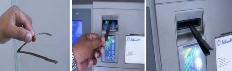 Ливанскую петлю чаще всего делают из обычной фотоплёнки. Её используют для того, чтобы после вставки карточки в картоприёмник, банкомат не смог выдать её назад клиенту. Всё это время мошенник ждёт неподалёку, и как только клиент уходит разбираться в банк, он тут же подбегает к банкомату, забирает карту и удаляется с ней в неизвестном направлении.