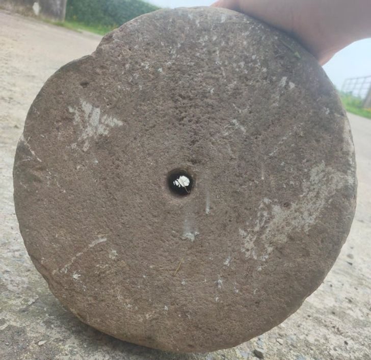 “На круглом камне есть выемка с одной стороны и отверстие по центру”
