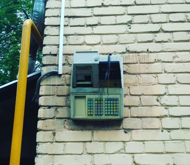 Не банкомат и не терминал, а старый кассовый аппарат. Не подключенный. Зачем он там?