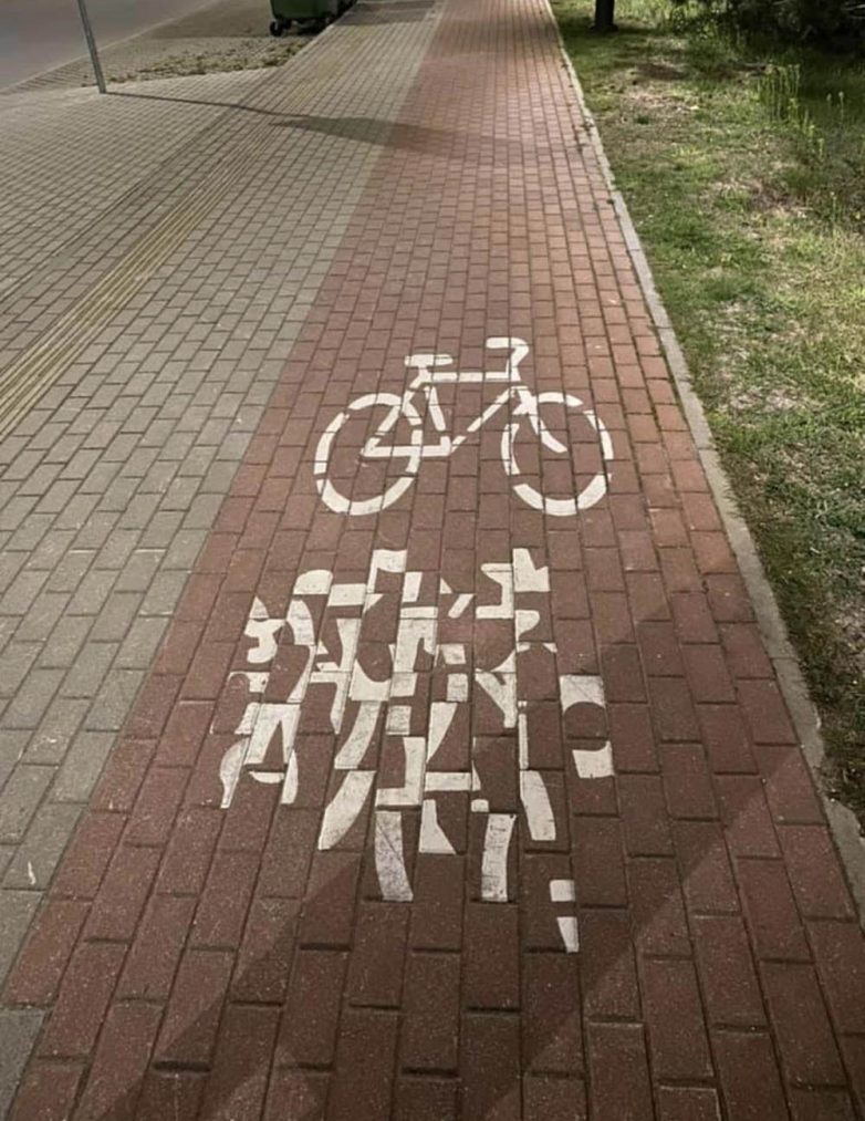 Наверное, они разбирали плитку, на которой был нанесен знак, а назад собрать не получилось. Так и оставили.