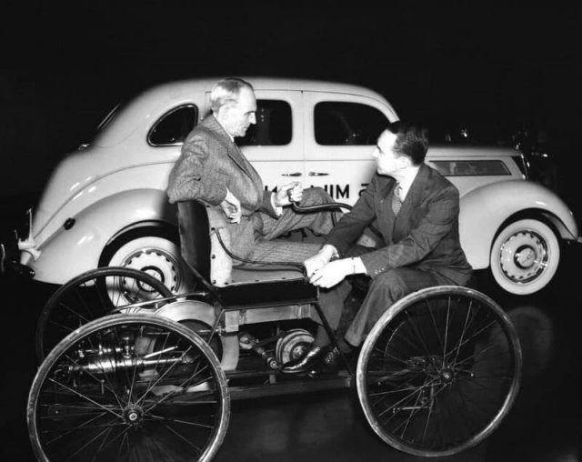 Генри Форд и его сын Эдсел Форд на первой машине. Декабрь 1939 года