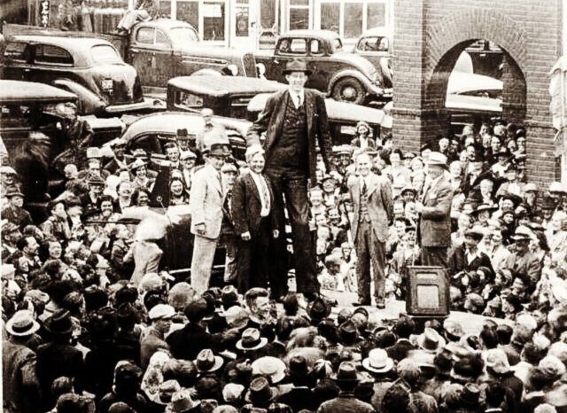 Робepт Уодлоу — один из самых высокиx людей в истории, 1939 год. Когда он умер, его pocт был 272 см, вес 199 кг