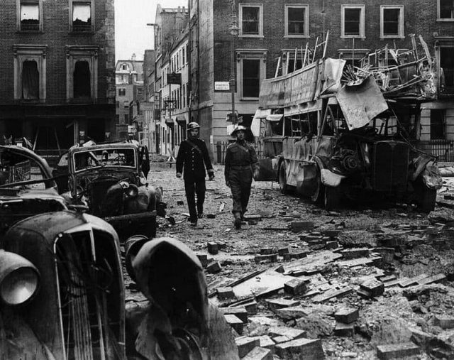 Последствия ночной бомбардировки Лондона, 1940 год.