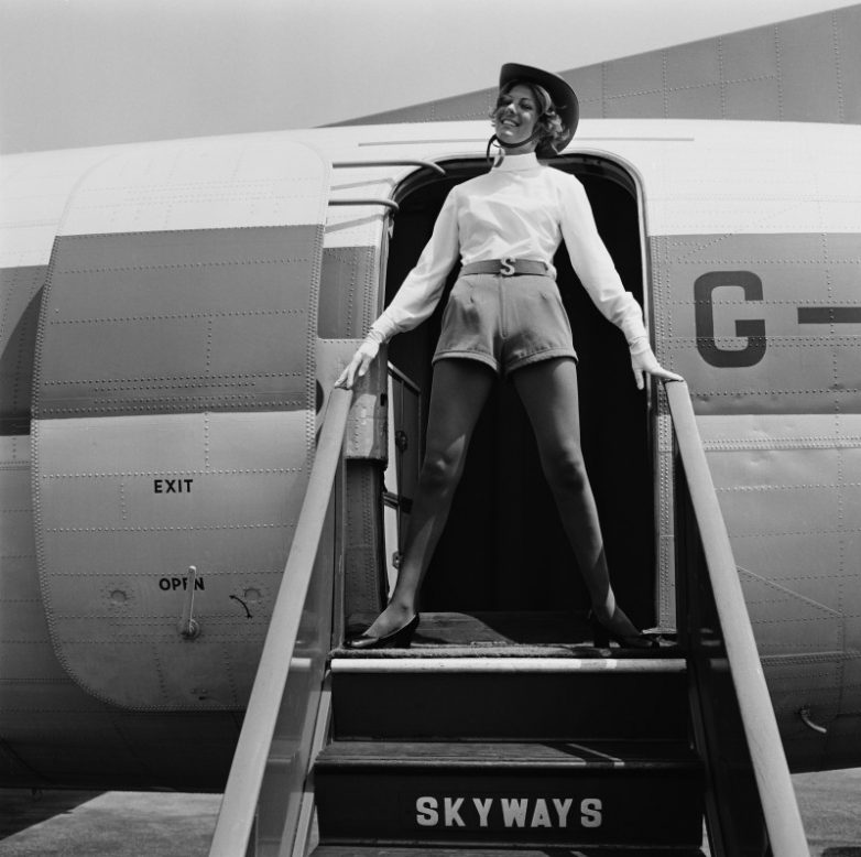 4 июня 1971 года. Стюардесса в новой форме авиакомпании Skyways. Фото Morrison.
