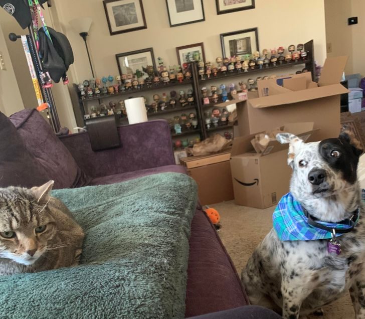 Кот отжал лежанку и собака мучительно решает, что делать дальше