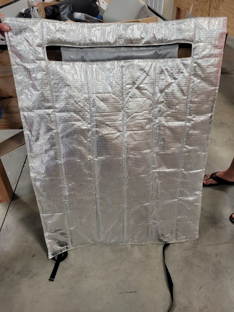 Вопрос: «Может это какое-то светоотражающее одеяло? Изоляция? Обломки космической капсулы? Предназначено для странной терапии? Примерно 90 см в ширину, может быть 120 см в высоту. Имеет некоторый вес, но небольшой, возможно около 2 кг. Тыльная сторона сделана из серого винила. Продавалось в магазине со скидкой, но не смог найти в Интернете ничего похожего»