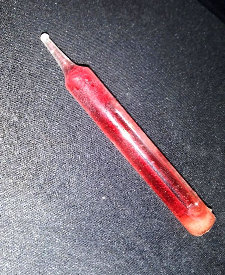 Вопрос: «Герметичная стеклянная колбочка с красной жидкостью внутри»